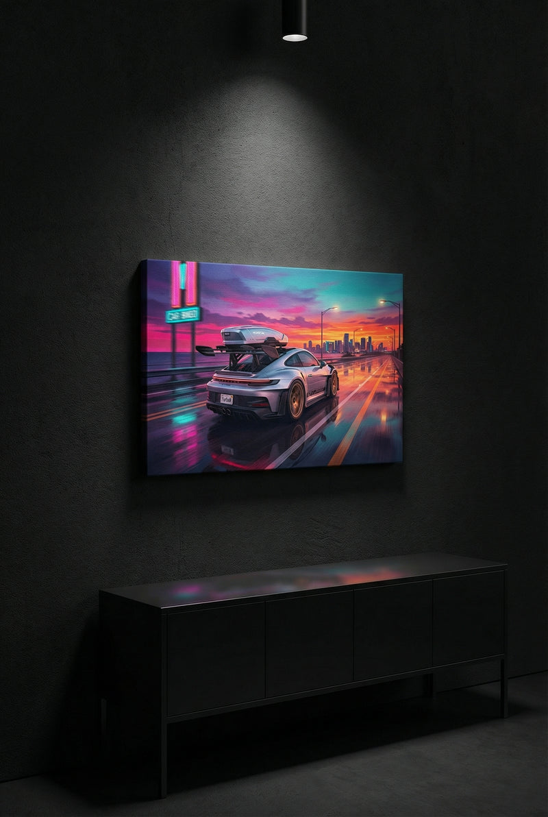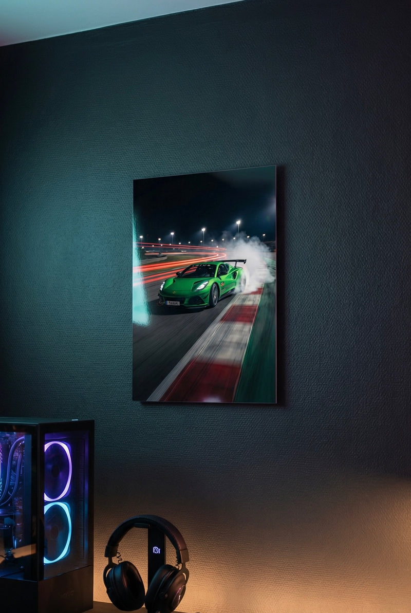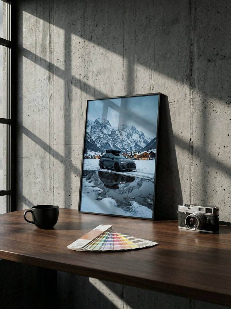 Every piece is built from scratch using your uploaded photo as the foundation. We don't crop your image onto a template. Your car is carefully refined, stylized, and re-composed into a finished artwork — lighting, composition, and positioning all adjusted to make it print-ready and visually striking. Every piece is a genuine 1-of-1.