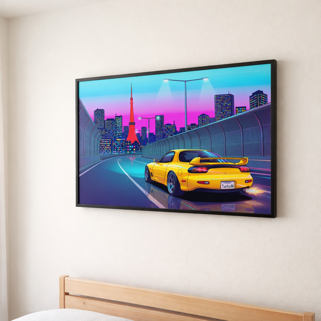 Every piece is built from scratch using your uploaded photo as the foundation. We don't crop your image onto a template. Your car is carefully refined, stylized, and re-composed into a finished artwork — lighting, composition, and positioning all adjusted to make it print-ready and visually striking. Every piece is a genuine 1-of-1.